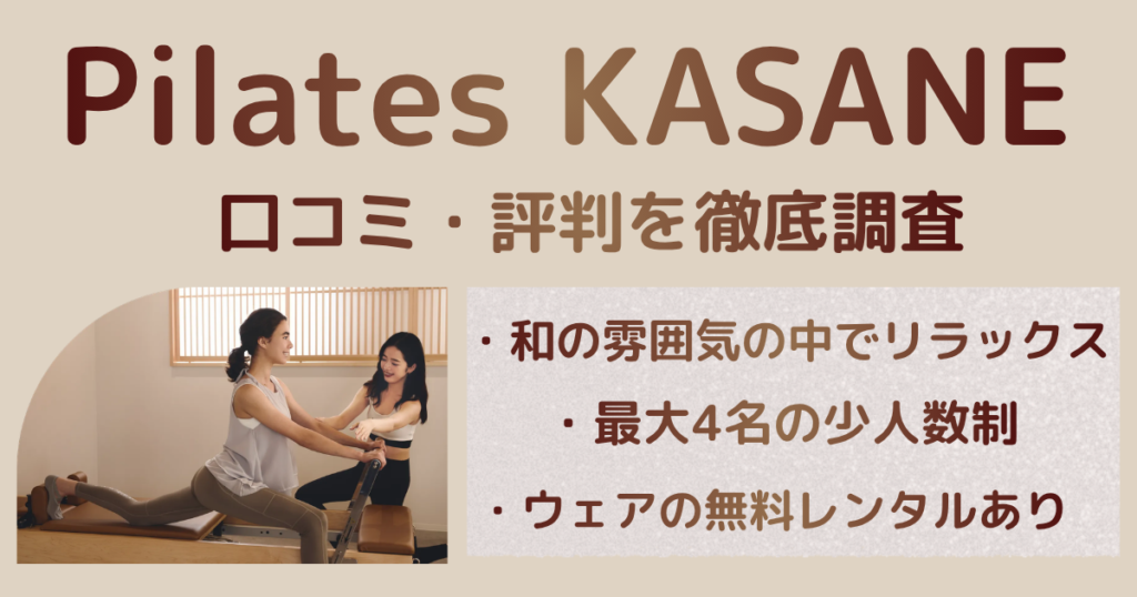 Googleマップ4.8の高評価!KASANE(カサネ)の口コミ・料金・他4社比較を正直にまとめました。4名〜の少人数制マシンピラティスが気になる方必見。入会金無料キャンペーン情報も。 -