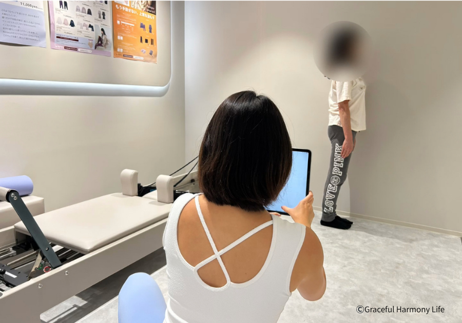 着替えを終えて、簡単な施設内の説明などがあります。その後、パーソナル姿勢診断を受けます。
