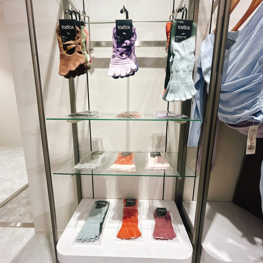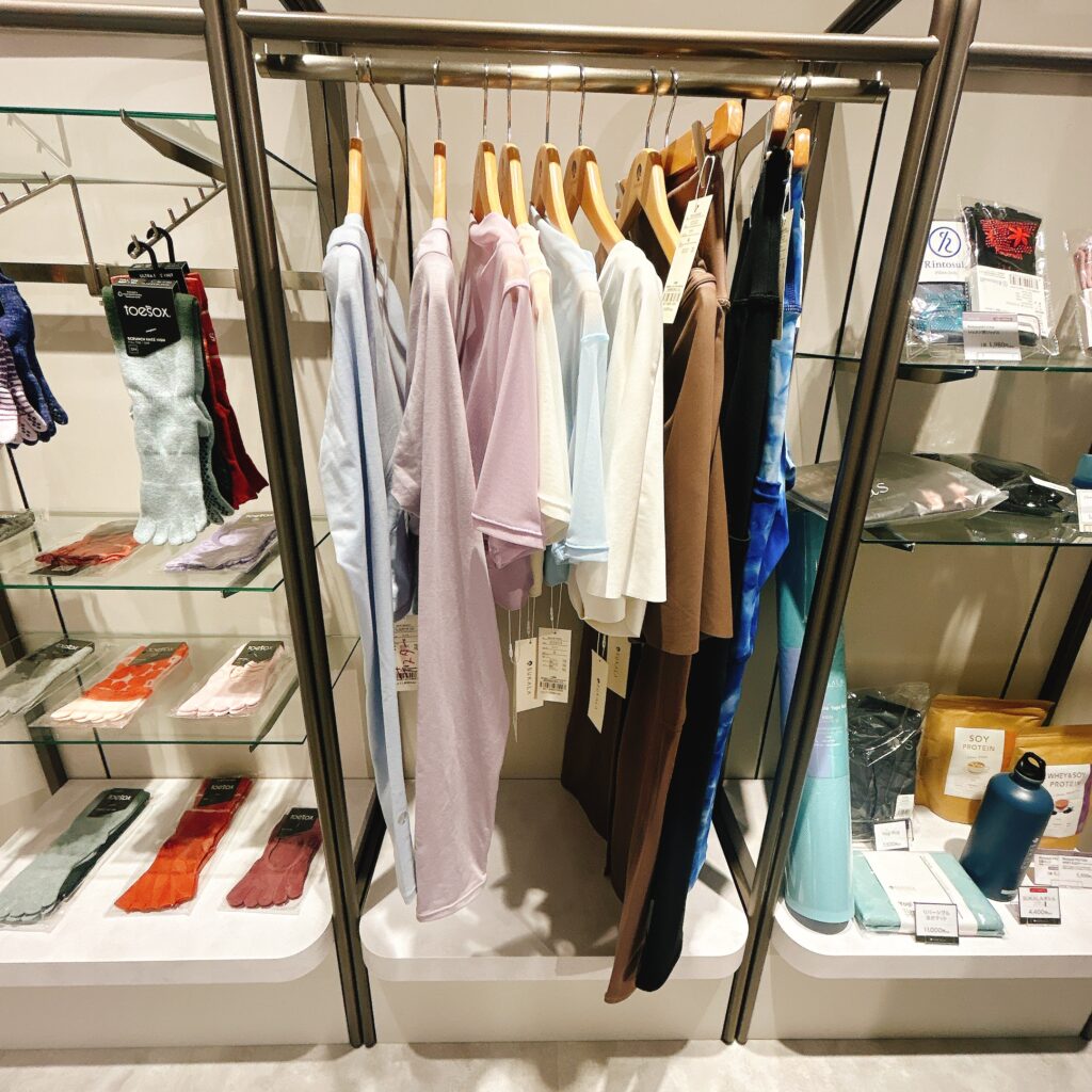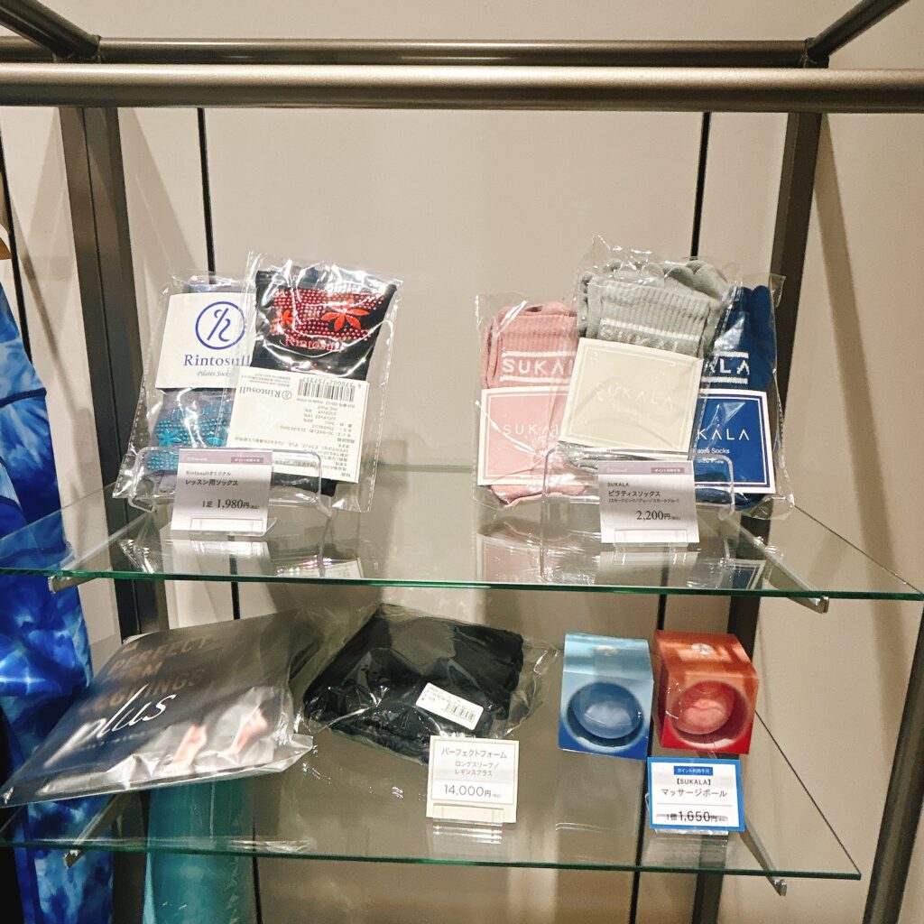 受付の真正面には、ウェアやヨガマット・プロティンなどが販売されています。