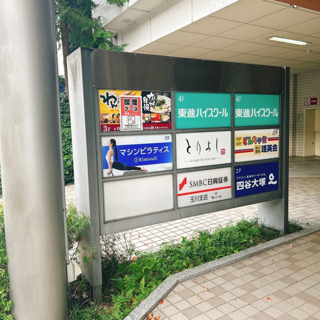 右手に、Rintosull 二子玉川店の看板(萩原第2ビル) が見えてきます。エレベーターで7階に上がりましょう。