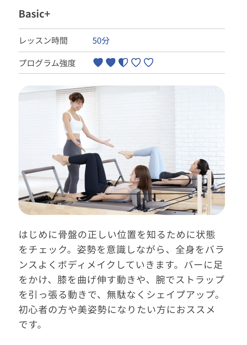 | スタジオ形態 | 女性専用マシンピラティススタジオ |