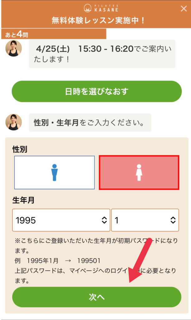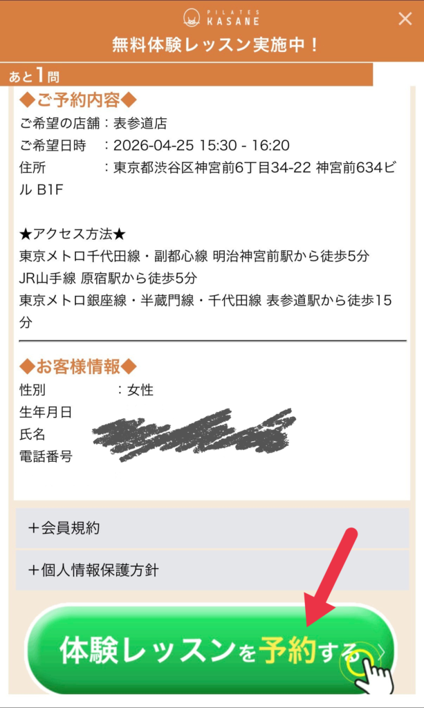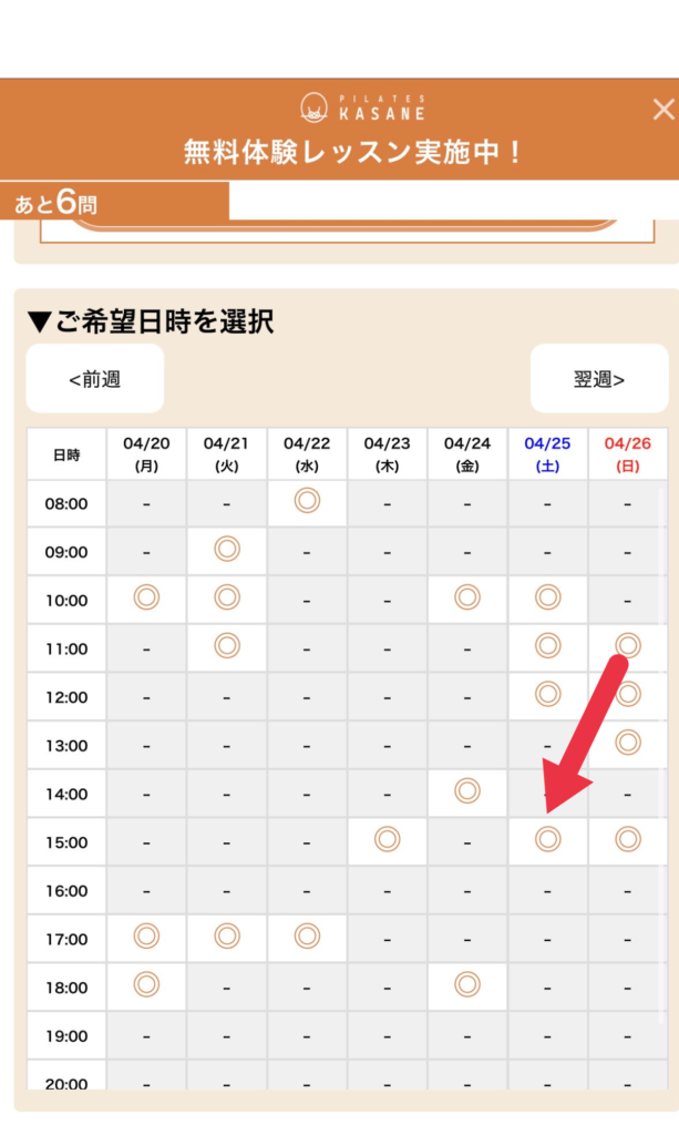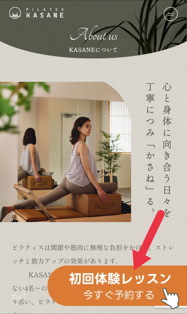 Pilates KASANEの体験レッスンは、公式Webサイトから簡単に予約できます。